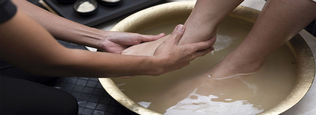 2. پاشویه روزانه پا با سبوس گندم، نمک، گل بنفشه و ختمی
